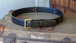 The 'Deaths-head' belt comprises of  2 sets of 3 solid brass rivets , each flanking 3 embossed Deaths-head hawkmoths.